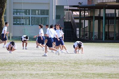 風向きの関係で、真幸地区は幸いなことにあまり影響がなく、グラウンドでは1年生がのびのびと体育の授業を行っていました。