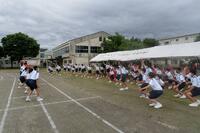最後に、当日は急な日程変更があったにも関わらず、たくさんの保護者が応援にかけつけてくださいました。また、PTA保健体育部員には、入口での消毒の呼びかけや団技の用具準備に協力してくださり、本当に感謝しております。ありがとうございました。
