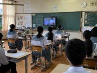 その後、宮崎県青少年育成県民会議からメディア安全指導員(福重真諭美氏)を派遣していただき、「メディアと健康~成長期の君たちへ~」という内容の講話をしていただきました。生徒にとって非常にわかりやすい講話であり、真剣に話を聞く姿が印象的でした。