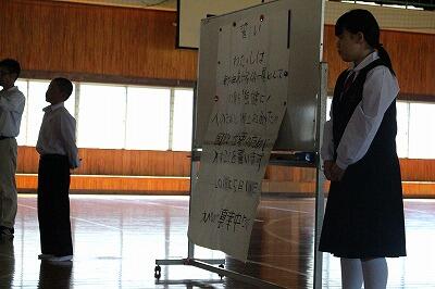 その後、教頭先生が、全国大会に出場する「空手競技」、そして本校で行われた学力向上コンテストの表彰を行いました。