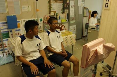 学校薬剤師においでいただき、エピペン使用の実際について模擬エピペンを使って実地訓練をしました。