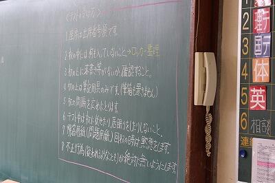 当たり前のことを徹底して行うという意味ですが、3年生は中体連が終了し、今後、進路先を見据えて一つ一つを丁寧に過ごしていきましょうという意味が込められています。
