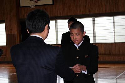 教頭先生のお話の後、人権関係の作文の表彰、学力向上コンテストの表彰を行いました。
