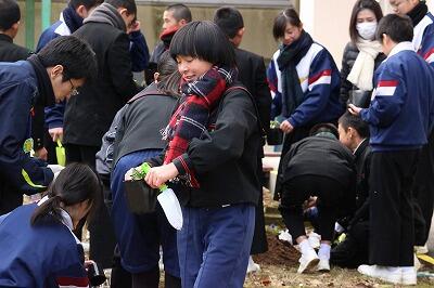 午後の掃除の時間を利用して、卒業式に向けて、花の苗の植え替えをしました。