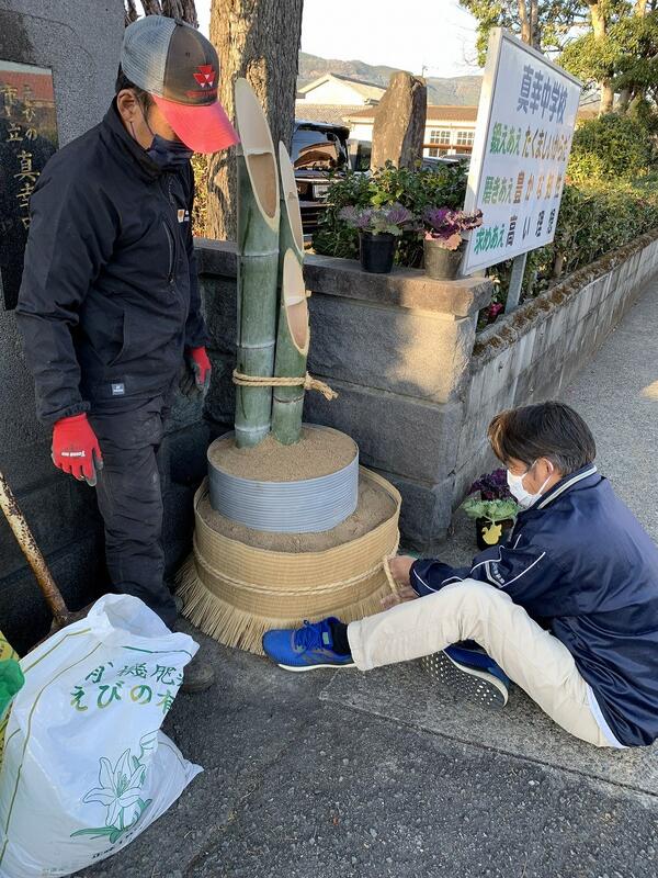 正門に門松が完成しました。