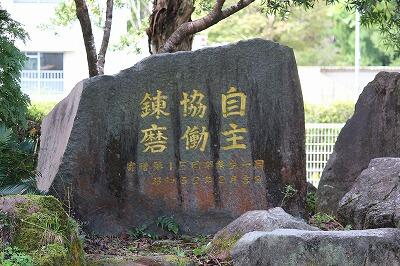 築山の石碑には「自主」「協働」「錬磨」の文字が刻んであります。
