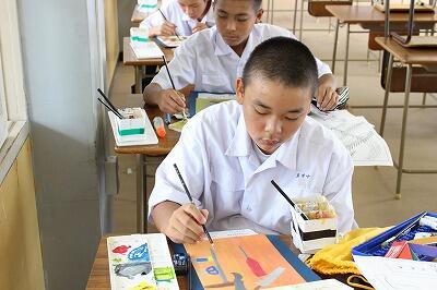 美術室では、こちらも文化祭の展示作品を作っていました。