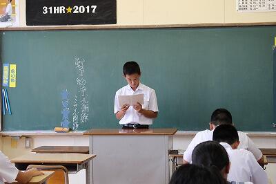 午後、学級では、文化祭に向けて学級弁論が行われていました。