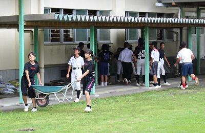 本校でも15日(金)は、台風に備え、部活動生を中心に飛びそうなものを運びました。