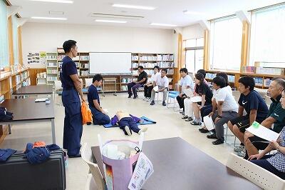 はじめに、えびの消防署署員の方から、蘇生法についての講習を受けました。