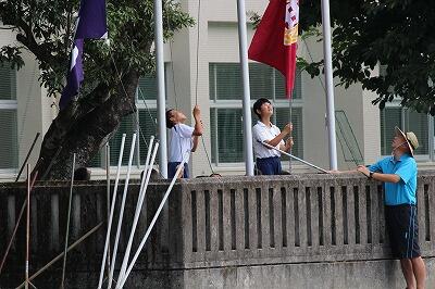 朝7:00に保護者、職員、生徒がグラウンドに集合しました。