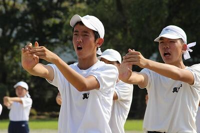本校は各団が独創をこらしたダンスを本番で踊りますが、自主練習として3年生が1・2年生に指導します。