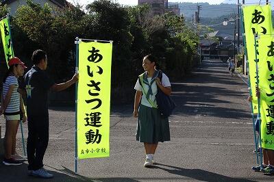 真幸小学校の6年生があいさつ運動に訪れてくれました。
