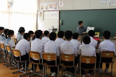 朝自習の時間に地域の方が来られ、絵本を開きます。