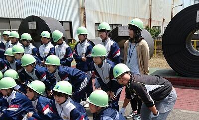 新日鉄住金で、鉄ができる過程を見学しました。真っ赤になった鉄の固まりは迫力があり、熱かったです。
