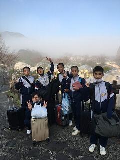 修学旅行最終日、朝の散歩を済ませて朝食です。みんな元気です。
