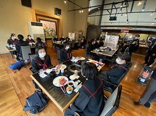 昼食です。修学旅行最後の食事は焼き肉です。