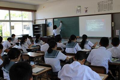 5時間目の参観授業は子どもたちもやや緊張ぎみ、それでも一生懸命手を挙げていました。