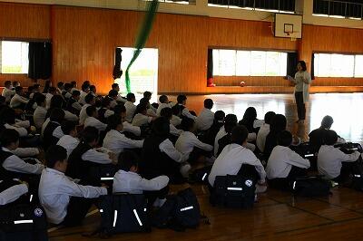 その後、「学校保健委員会」として、薬物乱用防止の講話を学校薬剤師さんに行っていただきました。