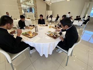 子どもたちはよく眠れたようでとても元気です。朝食のバイキングに目が輝いています。