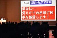 えびの学で学んだ「ふくし」を、「ふだんの くらしの しあわせのために」と捉え、体験を元に学んだことをまとめて発表しました。最後には、実際に手話を使って校歌を披露しました。