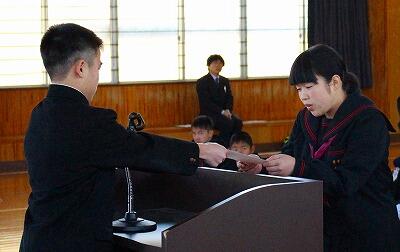 たくさんの生徒が満点賞でしたが、代表で各学年1名に賞状を手渡しました。