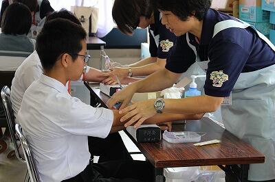貧血検査は、注射の針が刺さる瞬間、思わず目をそむける生徒も‥。