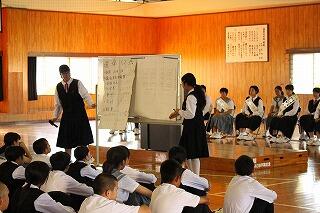生徒集会をまず行い10月の努力事項などについて発表した後、部活動ごとに大会に向けての抱負を語りました。