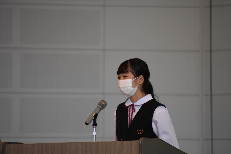 次に、英語暗唱・弁論の発表が行われました。9月に行われた西諸地区英語暗唱弁論大会にエントリーした以下の2名が発表しました。2人とも夏休みから練習を重ね、時には身ぶりも交え、素晴らしい発表でした。