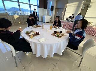 子どもたちはよく眠れたようでとても元気です。朝食のバイキングに目が輝いています。