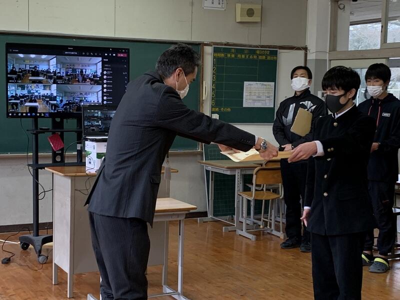 3月16日(火)に第74回卒業式を挙行しました。新型コロナウイルス拡大防止の観点から、在校生は教室でZoom配信、来賓不在、内容も縮減しての実施でした。