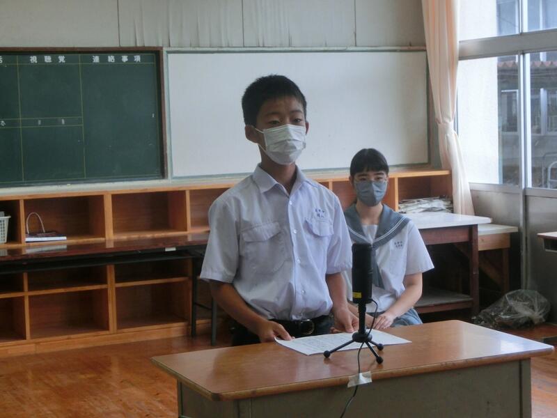 学校では、先週から体育大会の練習が始まりました。国や県・市の感染対策マニュアルに沿って対策を講じて練習を行っています。2メートル以上の距離を確保して行進したり、暑い中マスクを着用したりするなど大変ですが、生徒たちは全力で頑張っています。