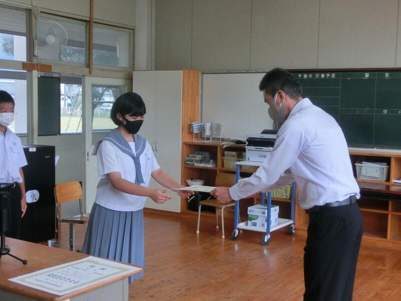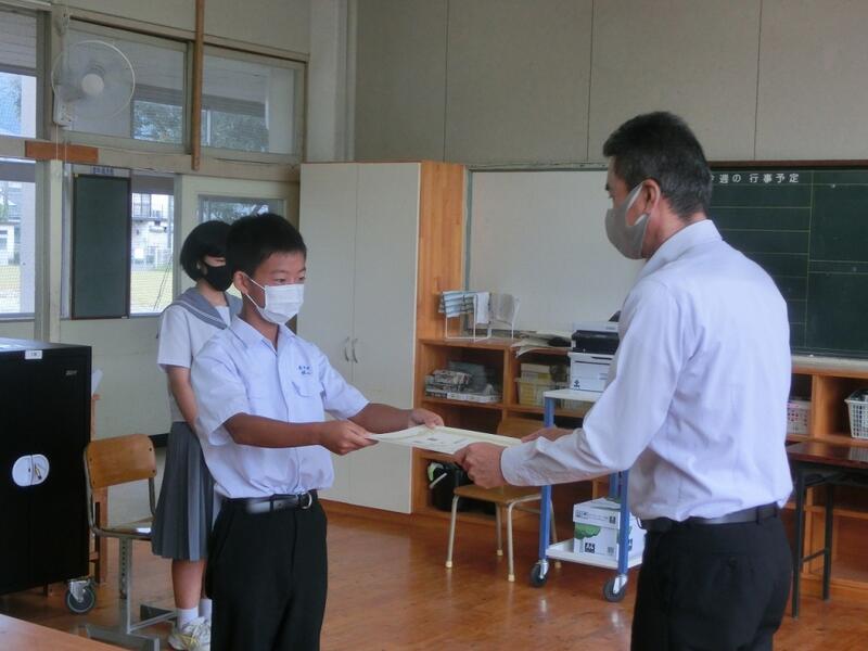 今年度と来年度の2年間、本校は租税教育推進校に指定されています。4月28日に本校校長室で、委嘱状交付式が行われました。小林税務署の方から校長に委嘱状を手渡されました。これから、税に関する学習や作品作りなど、行われる予定です。学習の様子はホームページでも紹介していきます。
