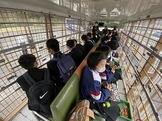 熊本港からフェリーに乗りました。初めての生徒も多いようで、デッキに出て楽しんでいます。