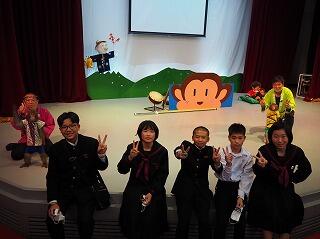 本事業は、舞台鑑賞するだけではなく事前にワークショップを行い、公演当日に制作団体と子供たちが共演するという特徴があります。そこで、6月1日(水曜日)に、4名の方々が来校してくださり、ワークショップを行いました。最初に、今回初めて落語に触れるという生徒たちに向けて、春風亭昇吉師匠が落語についての説明をしてくださいました。そして、江戸落語と上方落語を披露してくださいました。その後、本公演で共演する5名の生徒は落語の練習を、残りの生徒は、太神楽曲芸に必要なバランス感覚を養う練習などを行いました。どの生徒も生き生きとした目で楽しく活動していました。ワークショップ後には「本当に楽しかった」「本公演が楽しみ」という声が多く聞かれました。