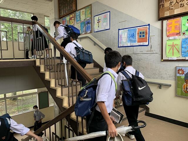 ③生徒は荷物を持って2階の特別教室に移動。(室内で読書をして待つ)
