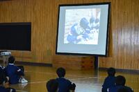その後、宮崎県青少年育成県民会議からメディア安全指導員(福重真諭美氏)を派遣していただき、「メディアと健康~成長期の君たちへ~」という内容の講話をしていただきました。生徒にとって非常にわかりやすい講話であり、真剣に話を聞く姿が印象的でした。