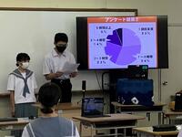 会では、まず保体委員会が、本校の実態について調べたアンケート結果を発表しました。グラフなどを使ってとてもわかりやすくまとめてありました。やはり本校でも、スマホやゲーム等の使用に関して課題がたくさんあることが分かりました。