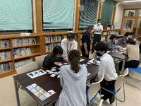 その後、人権擁護委員えびの部会の方々7名を講師として、人権学習を行いました。内容は、昨年度2月に実施予定であった「『人権かるた』遊びを通して人権について学ぼう」です。かるた取りだけではなく、途中途中で絵札の内容を振り返り、意見交換をすることで、「人権」について深く考えることができました。