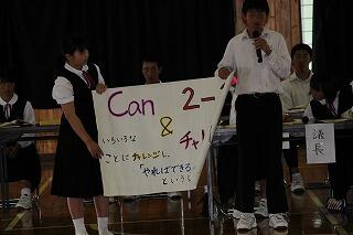 子どもたちは、もう夏服に衣替えして、涼しげな雰囲気での集会となりました。