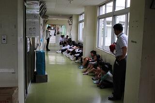 この日は、小学校で受けられなかった児童も中学校に来て検診を受けました。