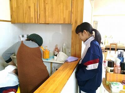福祉施設ではシーツの整理をしたり、幼児の相手をしたり。