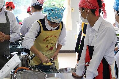 10月17日(火)、3年生は家庭科の時間に、「お弁当の日」に向けて調理実習を行いました。