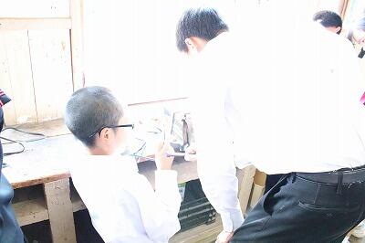 金具を万力で付けていくのですが、2年2組の子ども達は普段使うことのない道具に四苦八苦していました。
