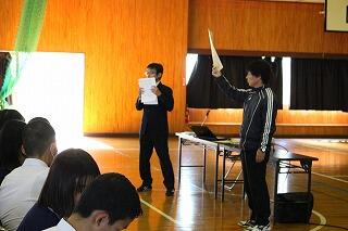 新しい役員さんになって初めての生徒集会。ずいぶん緊張したことでしょう。
