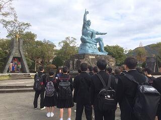 平和公園で、平和セレモニーを行い、みんで折った千羽鶴を奉納しました。