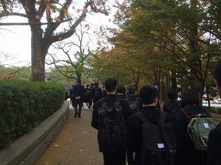 12月3日(火)7時28分。見送り、ありがとうございました。ハラハラドキドキの修学旅行が始まりました。実り多い充実した修学旅行になるように、生徒、職員ワンチームとなってがんばってきます。