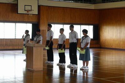夏休み前とは違い、体育館は過ごしやすく、やや秋の気配を感じながらの集会でした。