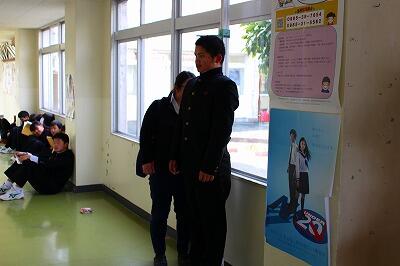 2月18日(月)、3年生は保健室に身長を測りに来ていました。