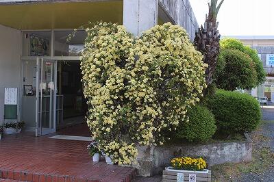 春爛漫(らんまん)となった学校では、玄関脇の黄色い花(木香花という名前だそうです)が満開となり、見事なハート型を形作っています。
